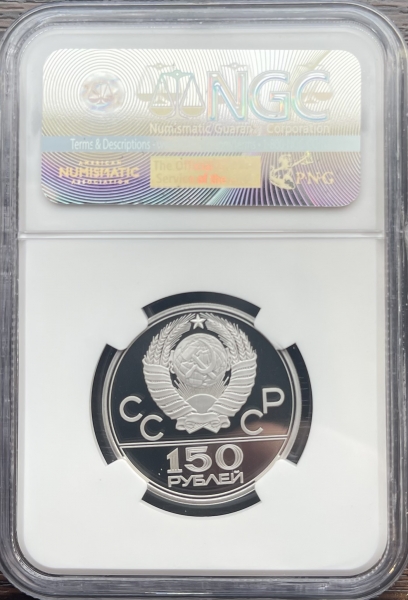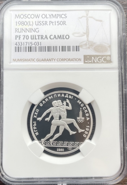 Платиновая монета 150 рублей "Античные бегуны" 1980г. ЛМД в слабе NGC PROOF 70 ULTRA CAMEO