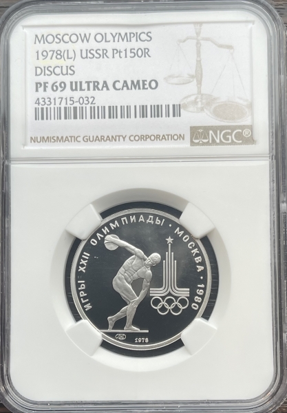 Платиновая монета 150 рублей "Дискобол" 1978г. ЛМД в слабе NGC PROOF 69 ULTRA CAMEO