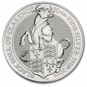 Серебряная монета 10 фунтов "Черный бык" серия: Звери Королевы, 2019 г., 311 г., Ag 999,9