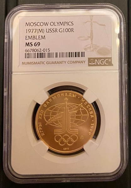 Слева и сверху вдоль канта слова «ИГРЫ XXII ОЛИМПИАДЫ», справа разделенные точкой слово «МОСКВА» и год проведения XXII Олимпиады «1980», в середине эмблема XXII Олимпийских игр и за ней аллегория спорта и мира в виде земного шара и лежащей перед ним лавровой ветви, ниже справа монограмма монетного двора «ММД», внизу у канта год выпуска монеты «1977».