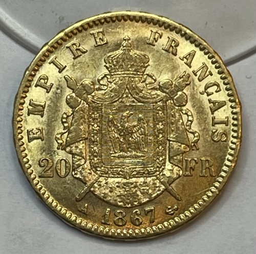 Золотая монета 20 франков Франция, Au 900, 6,45 г