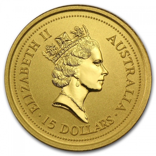 Золотая монета Австралии 15 долларов "Лунный календарь I- "Год крысы" 1996 год 1/10 унции, 3,11г.