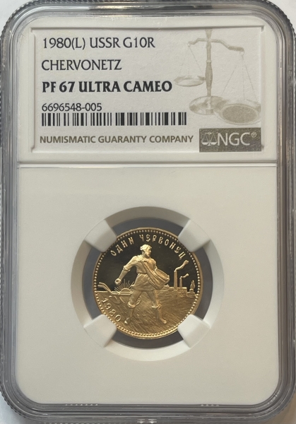 Золотая монета Червонец "Сеятель" В СЛАБЕ NGC PROOF 67, ЛМД , ПРУФ 8,6 грамм 1980 год